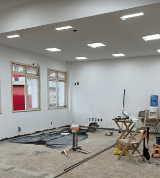 A reforma, de caráter abrangente, tinha como objetivo principal a modernização das instalações, a melhoria da infraestrutura e a adequação às normas de acessibilidade e segurança vigentes. Desde o início, estabelecemos uma comunicação clara e eficaz com todas as partes envolvidas: a empresa responsável pela execução das obras, os representantes do CREA-RS, os profissionais técnicos e a comunidade local.